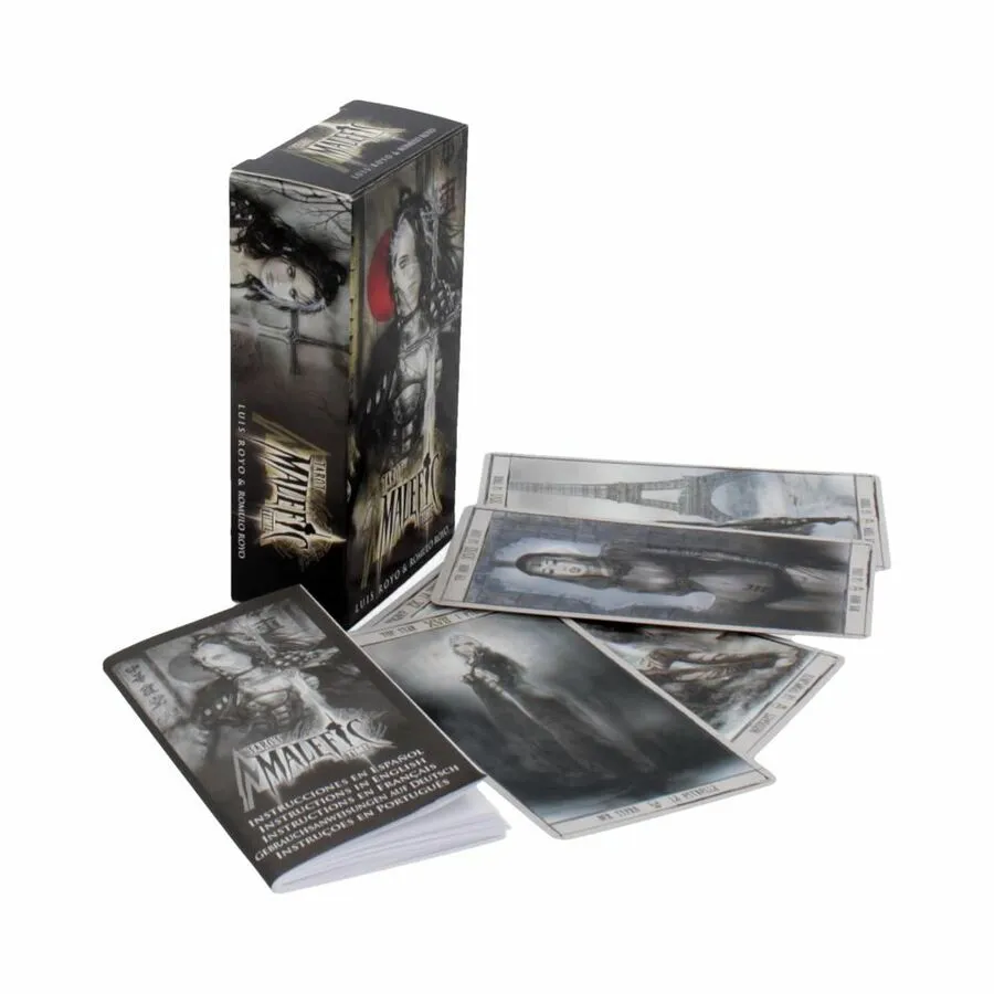 Il y a 78 cartes incroyablement dĂ©taillĂ©es, chacune montrant un personnage ou une scĂšne diffĂ©rent de la saga Ă©pique Malefic Time. Jouant le conflit millĂ©naire entre l’ordre et l’intuition, les personnages comprennent Marduk, Baal et la mystĂ©rieuse Ă©pĂ©e intelligente MalĂ©fique