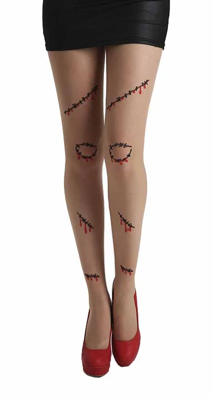 L’effet points de suture sanglants est saisissant ! Cette paire de collants gothiques sera le complĂ©ment indispensable Ă toutes vos tenues 100% dark !