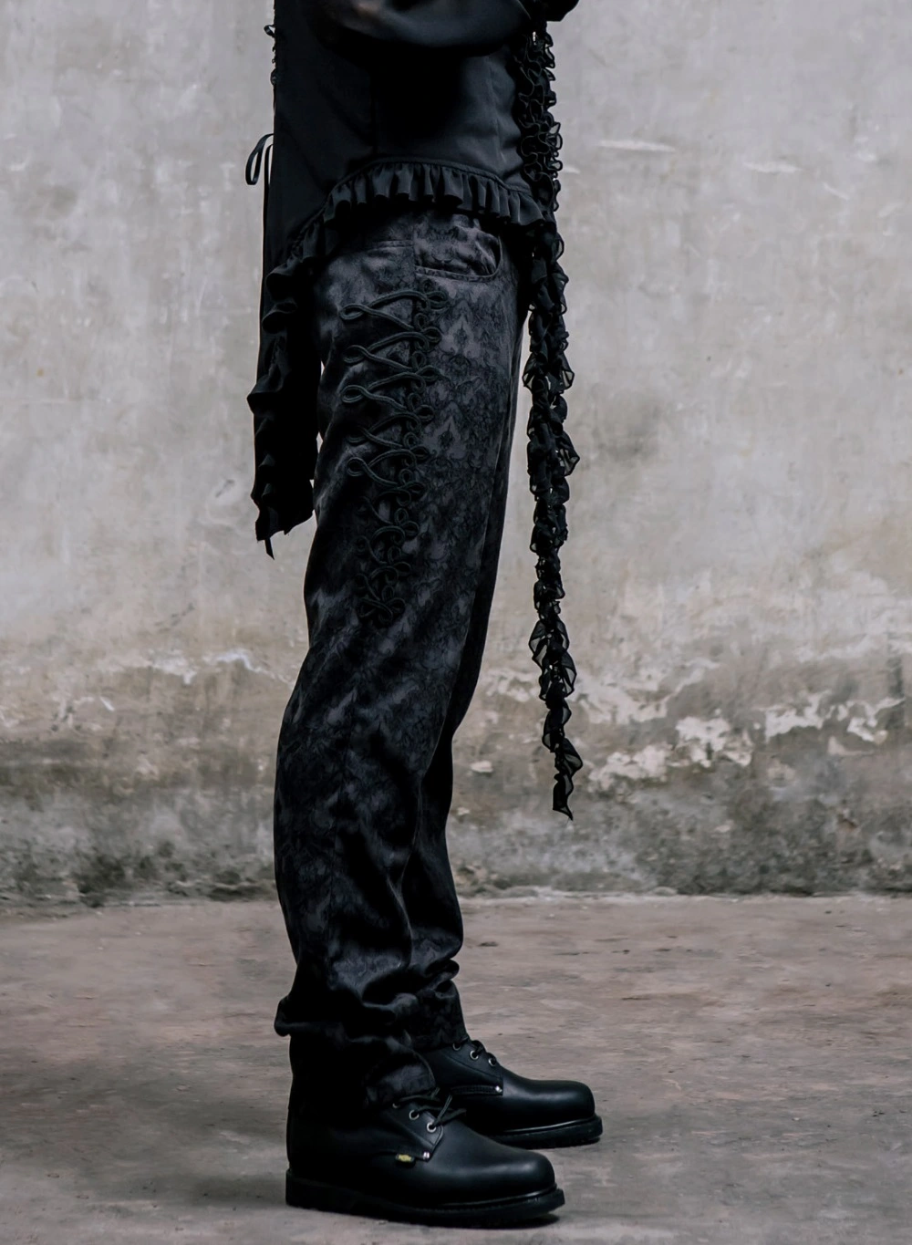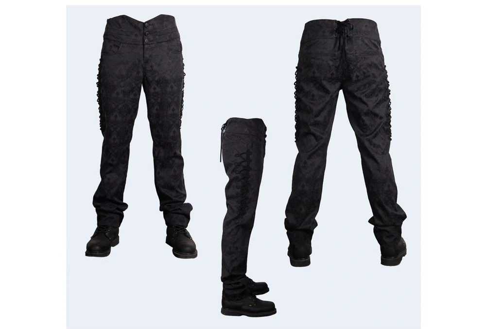 Pantalon gothique homme taille haute en tissu brocarde de trÚs belle qualité.