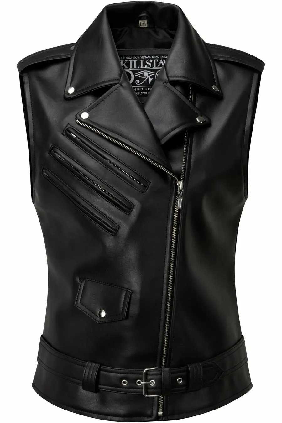 Superbe blouson sans manches de type perfecto en cuir vegan de haute qualité