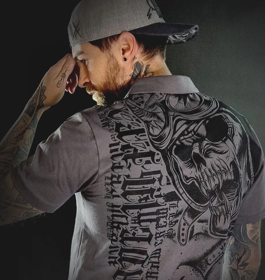 Il est agrémenté de 2 terribles sérigraphies avec crùne de démon style biker