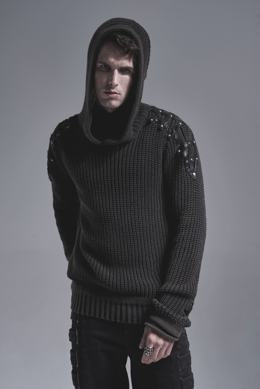 Décoration sur les épaules avec laniÚres en simili cuir noir effet vieilli et rivets métalliques style antique et skull