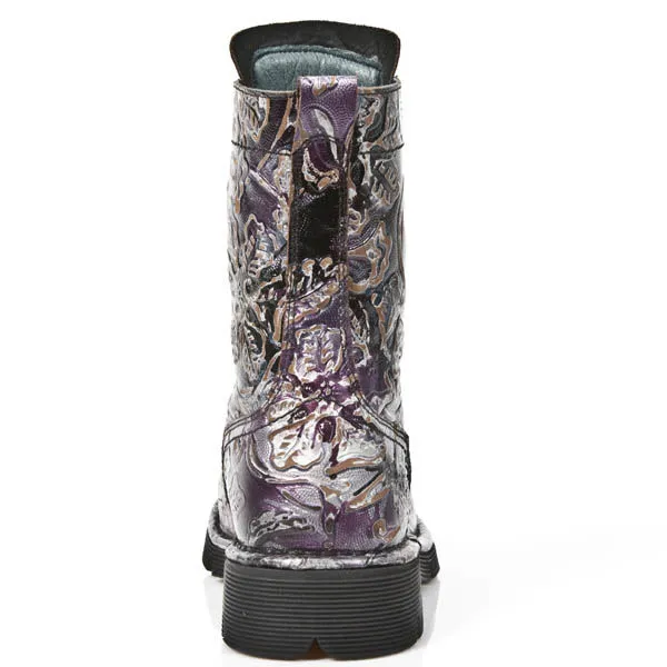 Avec la rangers 1423-s22 New Rock a su allier le cĂŽtĂ© punk de la rangers avec le style romantique d’une chaussure multicolore