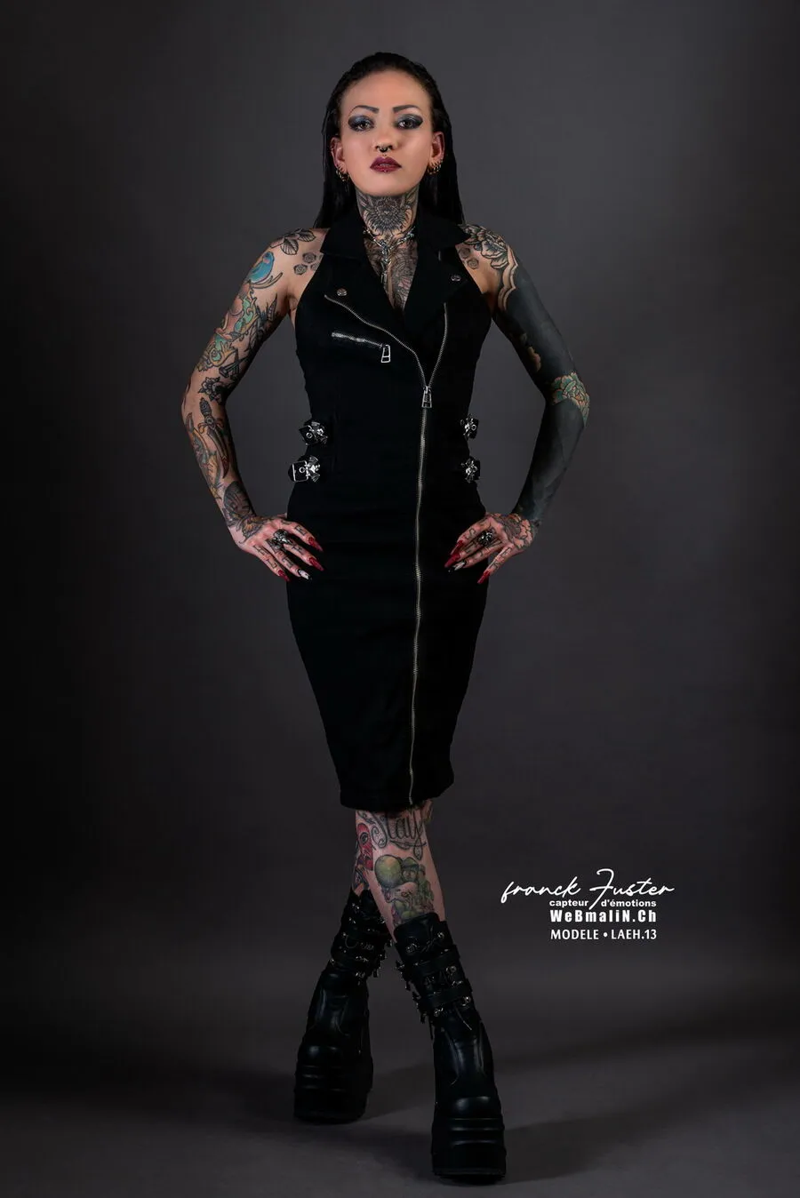 Sans manches, elle possÚde une fermeture éclair sur toute la longueur