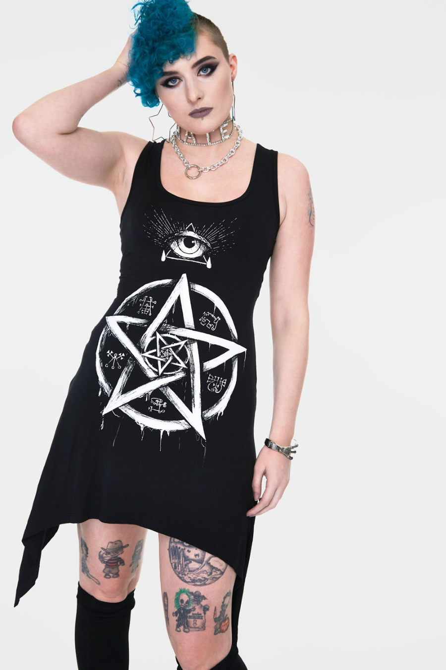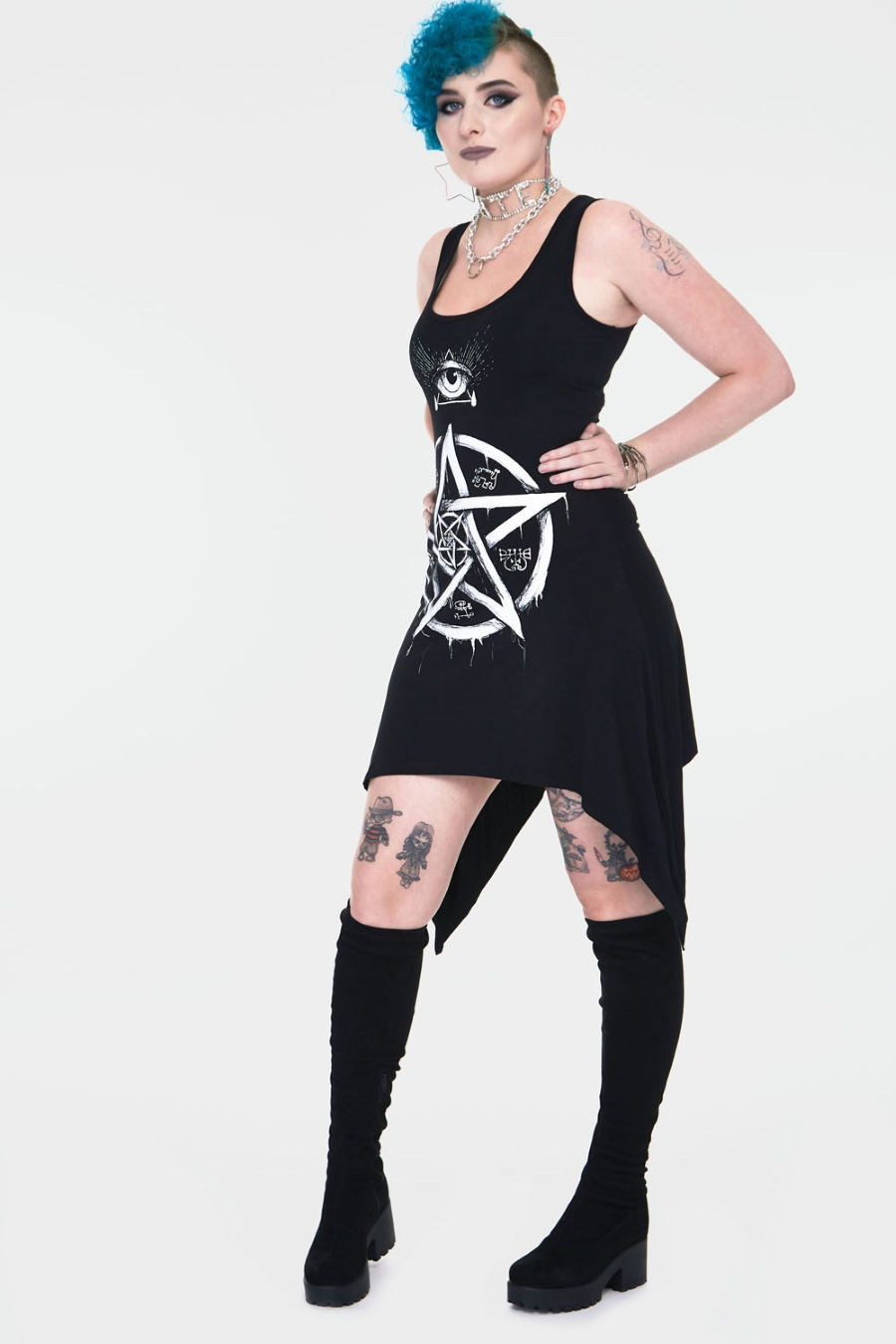 elle est agrémentée d’un grand imprimé pentagramme à l’avant