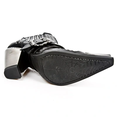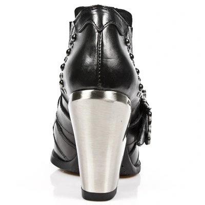 Grand talon mĂ©tallique, nombreux rivets, boucles skull…pour ĂȘtre certaine de ne pas passer inaperçue !