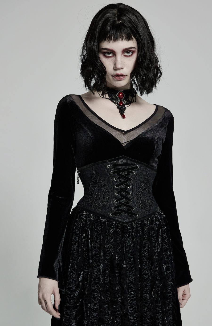 Laçage dĂ©coratif Ă l’avant par ruban de velours avec oeillets stylĂ©s