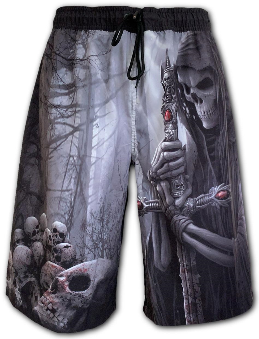 ImprimĂ© all over avec le fameux reaper tenant son Ă©pĂ©e de la mort sur une jambe et le sol jonchĂ© de crĂąnes humais sur l’autre jambe