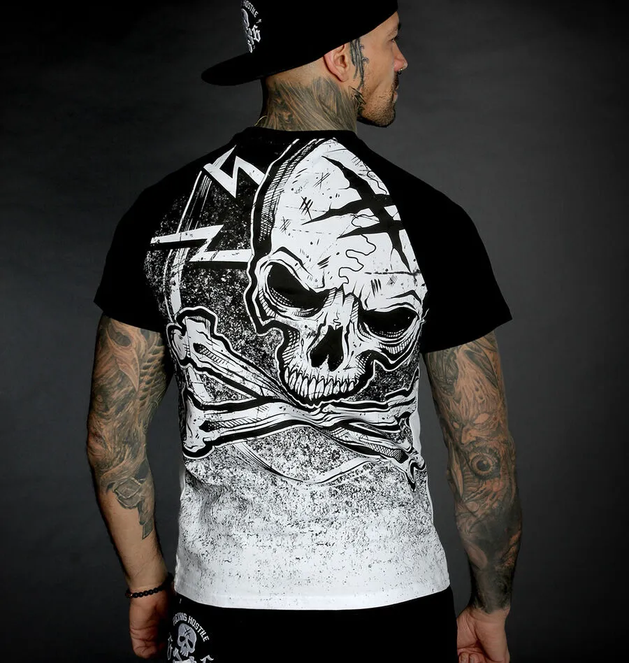 L’imprimĂ© reprĂ©sentant un gros skull est rĂ©alisĂ© avec des encres Ă l’eau, procĂ©dĂ© de qualitĂ© vous garantissant une trĂšs bonne longĂ©vitĂ© et rĂ©sistance aux lavages