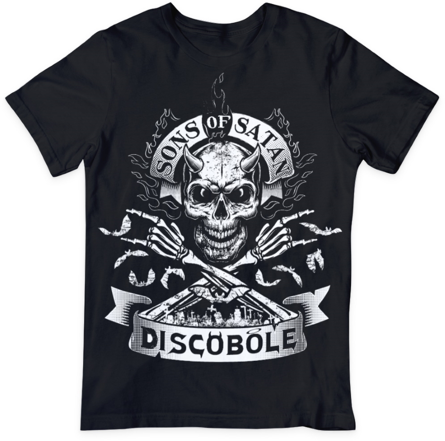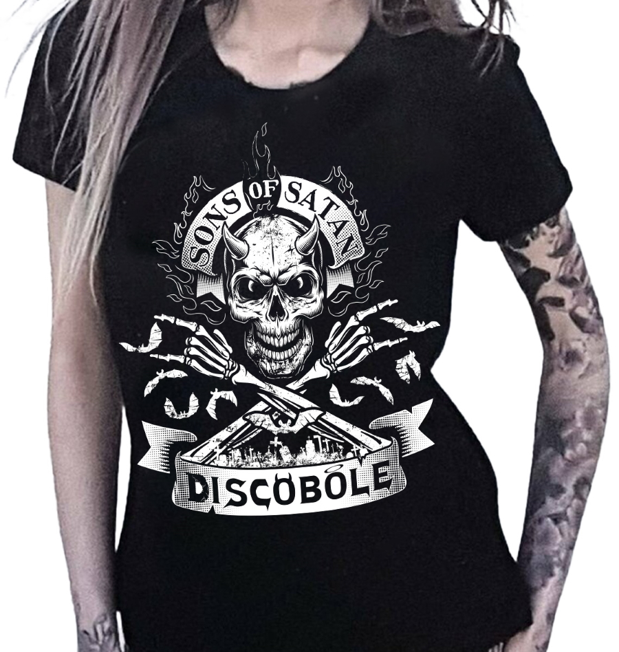 SĂ©rigraphie grand format avec l’inscription “Sons Of Satan” (fils de Satan), au moins les gens saurons qui vous ĂȘtes…Â